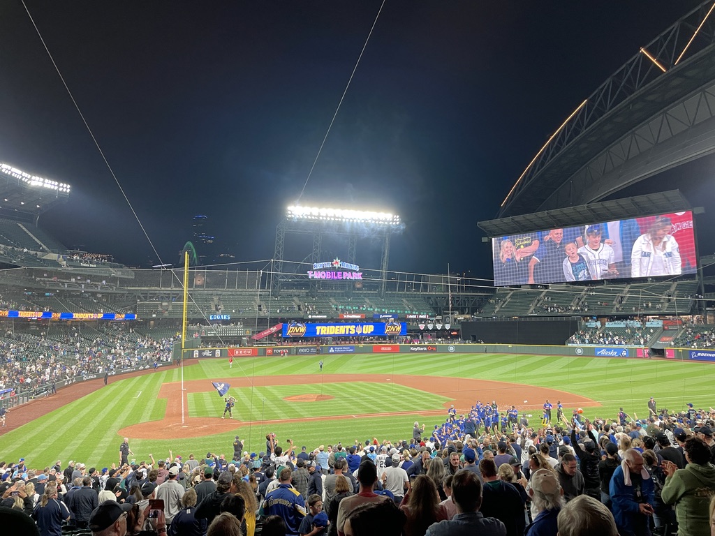 Around the same time the disappointing game ended, the highway opened back up (“for real” this time).  We got back to the car and got in line to head down the hill.